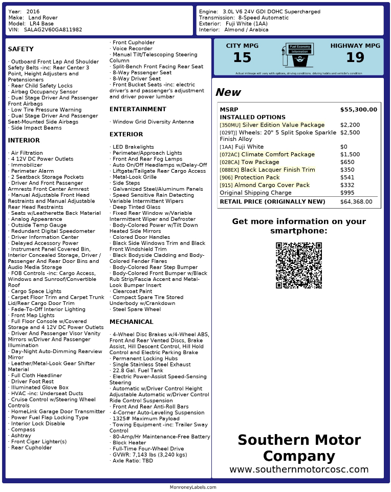 *Prices Subject to Change without notice at Southern Motor Company's Discretion*