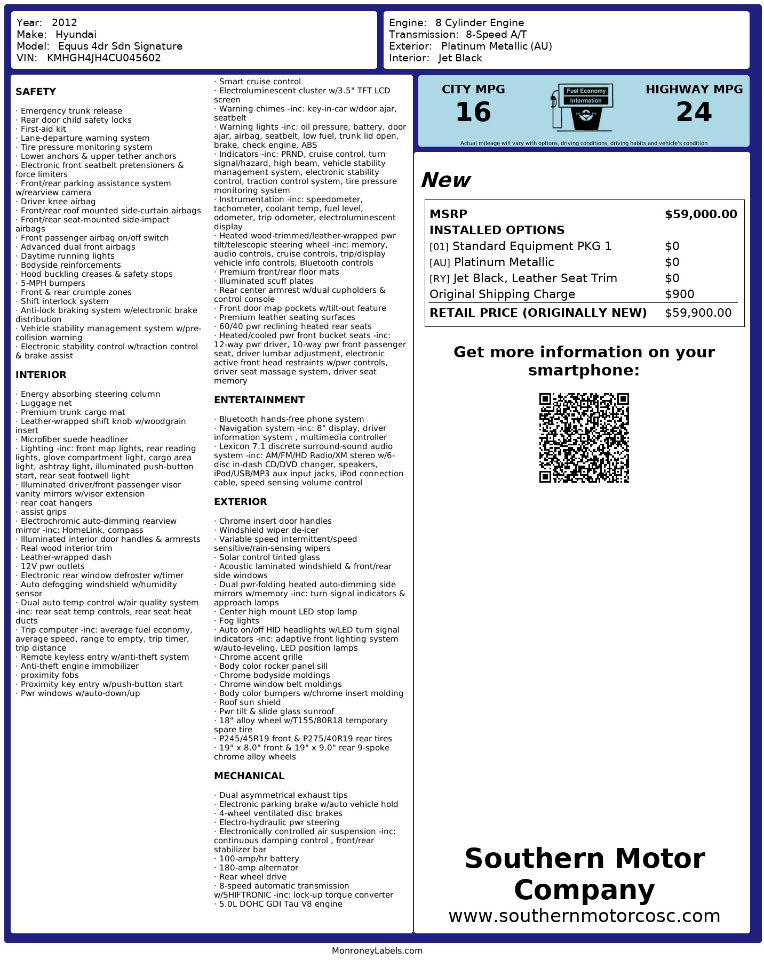 *Prices Subject to Change without notice at Southern Motor Company's Discretion*
